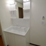 ユニットバス工事と同時に洗面台も取替させていただきました。